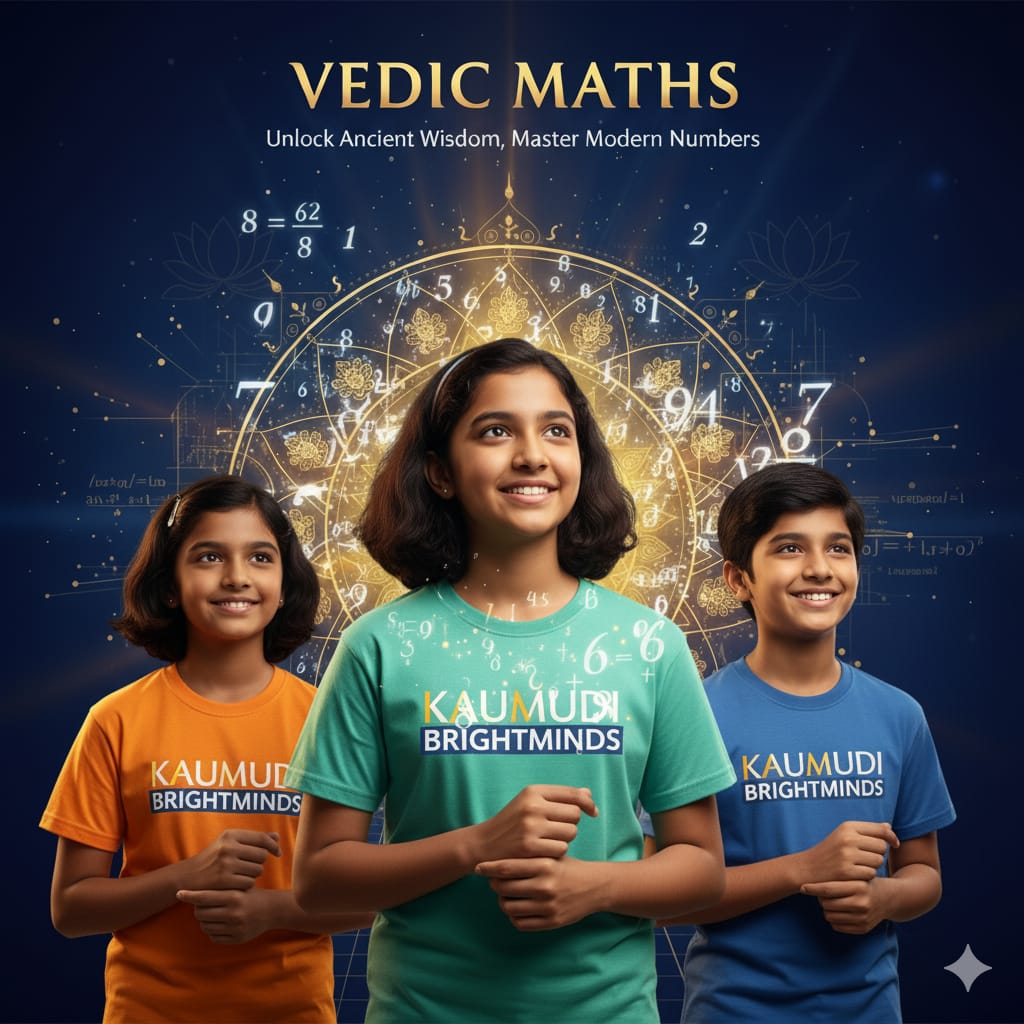 At Kaumudi Bright Minds Edu, we bring the ancient wisdom of Vedic Mathematics to modern learners. This unique system, derived from the ancient Indian scriptures called the Vedas, makes mathematics simple, fast, and enjoyable.
