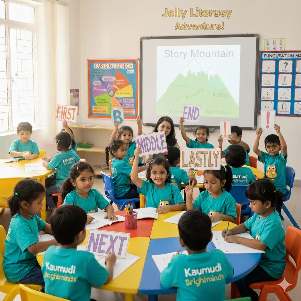 At Kaumudi Bright Minds, we introduce children to reading and writing through the Jolly Phonics program, a proven and fun-based method used worldwide.